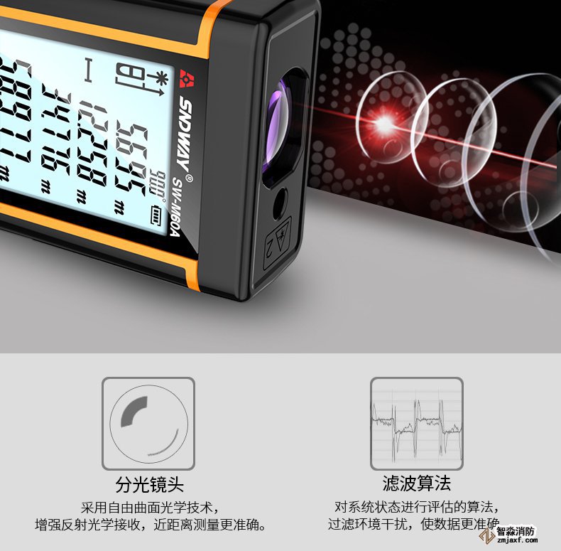 測(cè)距儀是測(cè)量距離的工具,從測(cè)距基本原理,可以分為激光距儀、超聲波距儀和紅外距儀三類。激光測(cè)距儀是目前使用最為廣泛的測(cè)距儀,是利用激光對(duì)目標(biāo)的距離進(jìn)行準(zhǔn)確測(cè)定的儀器。激光測(cè)距儀在工作時(shí)向目標(biāo)射出一束很細(xì)的激光,由光電元件接收目標(biāo)反射的激光束,計(jì)時(shí)器測(cè)定激光束從發(fā)射到接收的時(shí)間,計(jì)算出從觀測(cè)者到目標(biāo)的距離,圖4-1。消防檢測(cè)設(shè)備:WWW.XDJYQ.COM