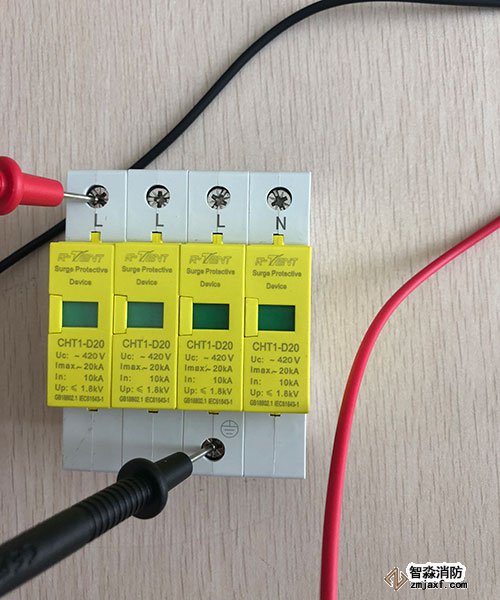 測量浪涌保護器接線圖,紅色線對應儀表紅色端,對應浪涌保護器L端,黑色線對應儀表黑色端,對應浪涌保護器接地端